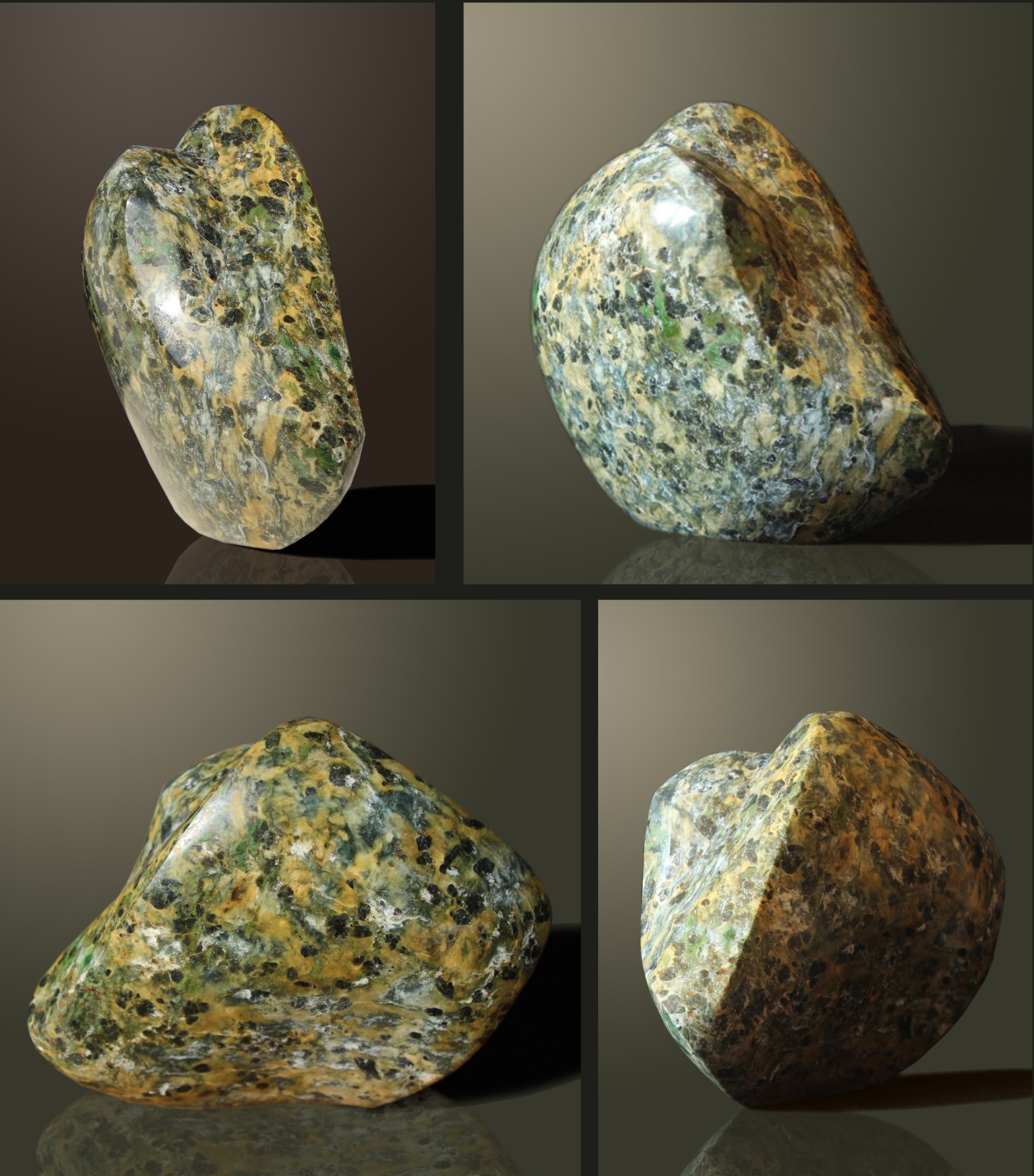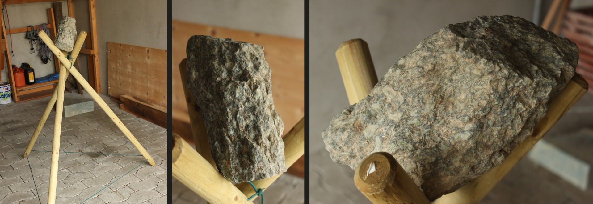 Dieser Stein stellte einige Anforderungen: zunächst auf dem "Dreibein" mit Hammer und Meissel, dann auf der Schleifmaschine, bei der die Grösse grenzwertig wurde.