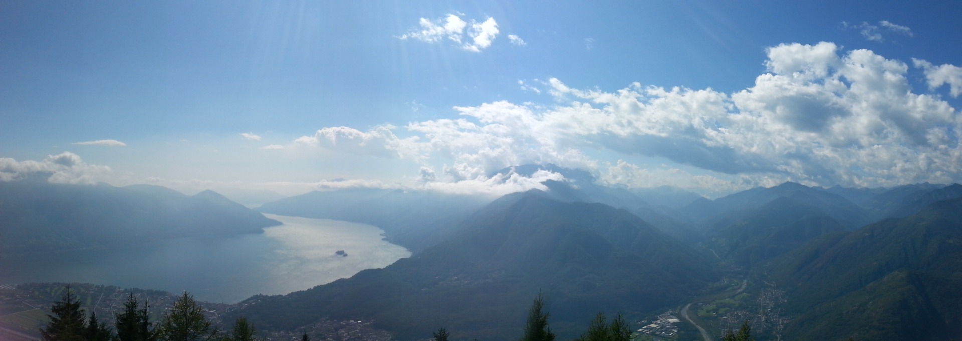 Blick vom Cimetta auf Locarno und dem Lago Maggiore mit den Inseln Isole di Brissago.