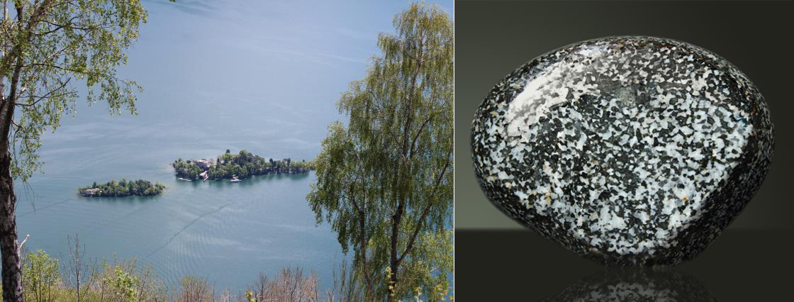 Als wir auf das Schiff warteten (Isola de Brissago) fand ich am Strand diesen Stein. Er wurde von einem Mineralogen als Gabbro angesehen.